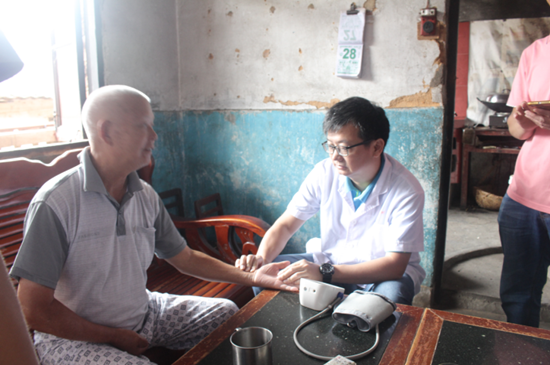 在开展食药科普进农村活动的同时,广东省执业药师注册中心主任朱思旭带领工作人员开展了相关扶贫工作,进入行动不便的村民及老党员家中慰问。工作人员带去了慰问品并帮他们进行免费体检及健康诊疗,保障这些村民及老党员的身体健康。