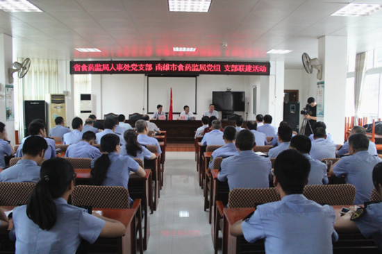 为进一步落实全面从严治党主体责任,充分发挥基层党组织战斗堡垒和党员的先锋模范作用,7月21日,人事处党支部由支部书记带队,到对口联建单位南雄市食品药品监督管理局开展基层支部联建工作。省局党组书记骆文智同志以普通党员身份参与了联建活动,并亲自为联建单位的全体党员干部上了一堂《以迎接党的十九大召开为动力着力加强基层党组织建设》专题党课。